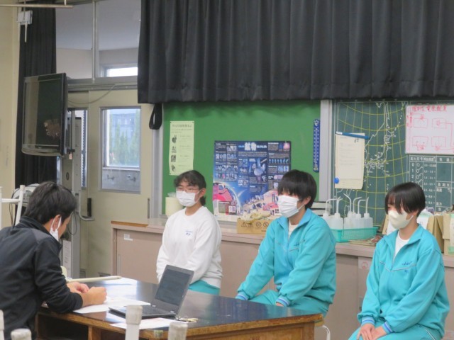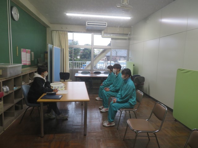 インタビューシートを作成し、それを元に3年生の先生に面接官をしていただき、面接練習を行いました。