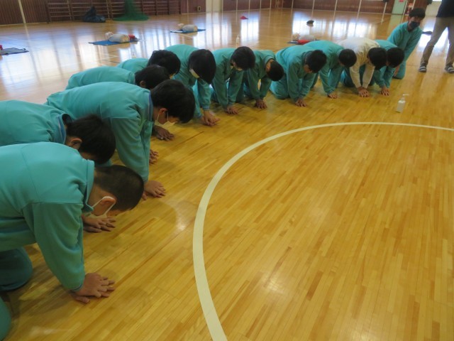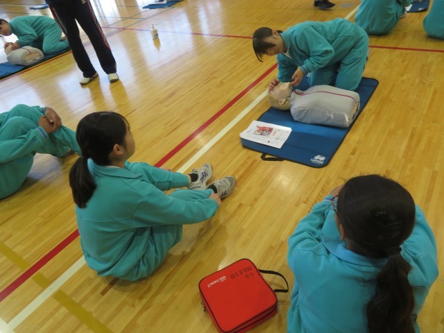 生徒達は一生懸命、教えていただいた救命法に取り組みました!