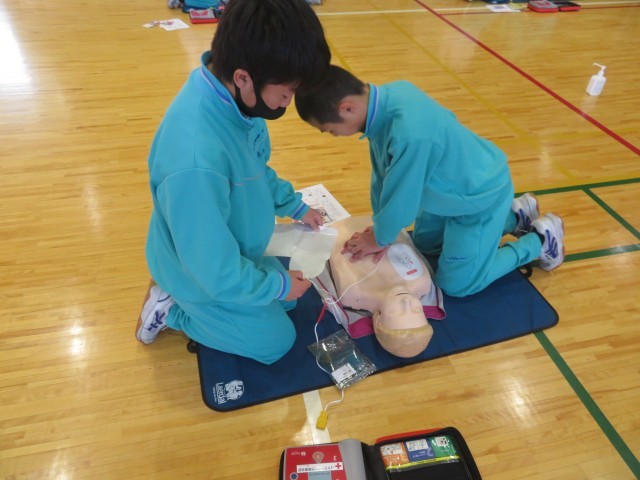 本日の午前中、心肺蘇生法講座を2年生で行いました。