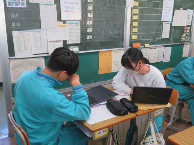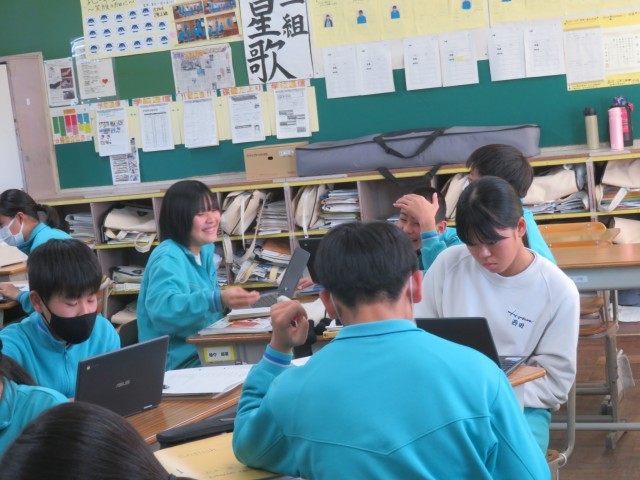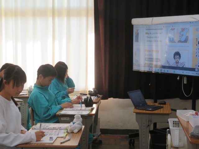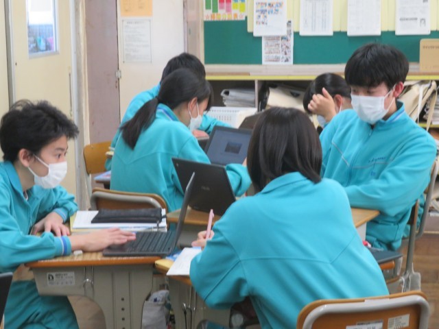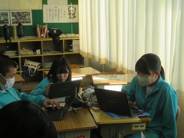 2年生ではお気に入りの場所をALTの先生に紹介しようというプロジェクトで各自プレゼンテーションを作成していました。