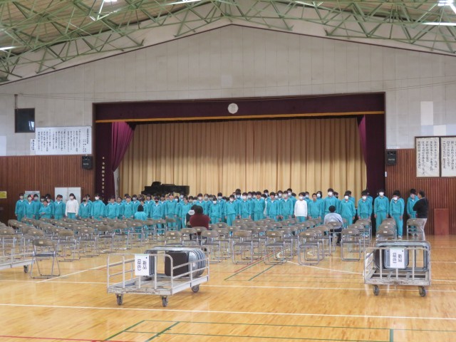 2年生は先日学年閉鎖のため延期になった立志式の練習を行いました。