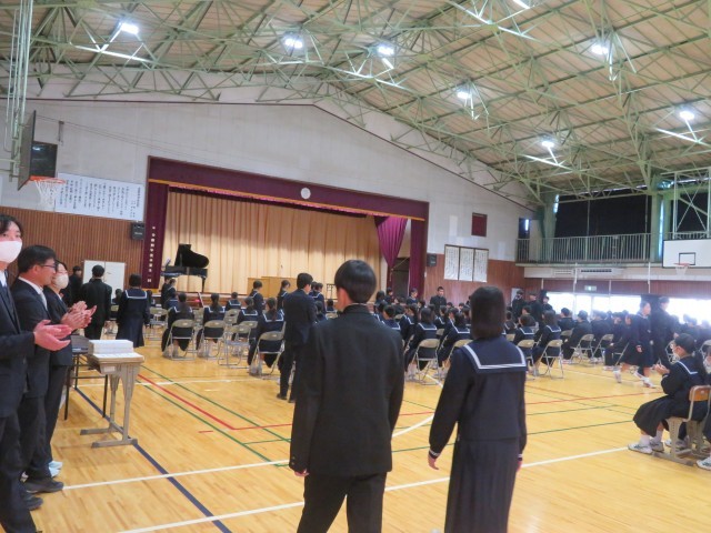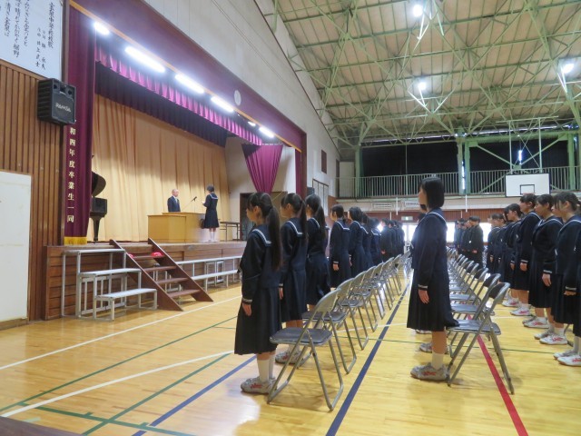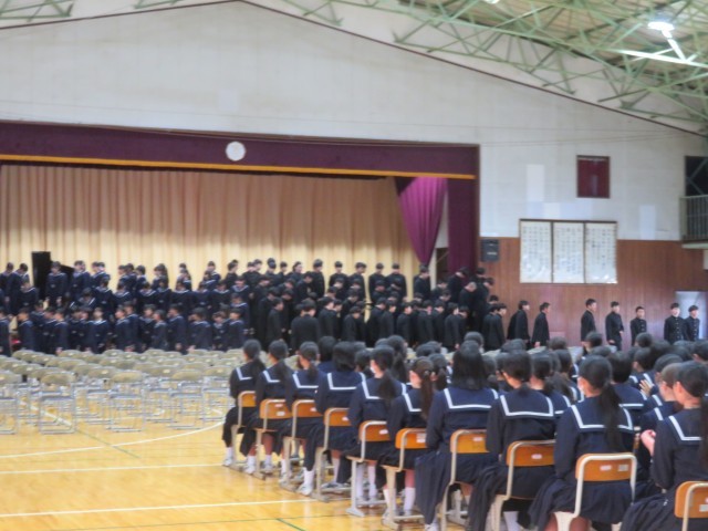 本日卒業式の予行練習が行われ、全校生徒が参加し、立派な態度で行うことができました。