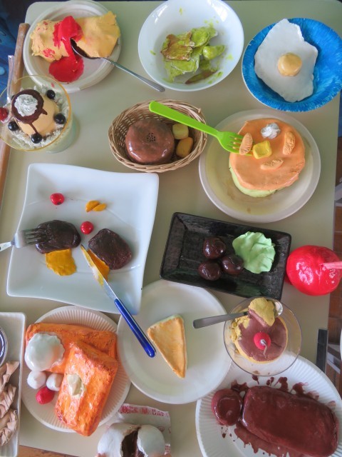 2年生のオリジナル和菓子、立体名画、1年生の洋食、どれもリアルでとっても美味しそうです!