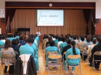 登録式は、JRC委員会の進行で行われ、各クラスの代表生徒が署名をした後、誓いの言葉を全員で述べました。最後に1年生にバッジ、2,3年生にステッカーが贈呈されました。
