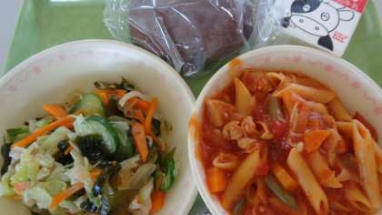 ※マカロニトマト煮、麻婆豆腐、きっと大会に臨む応援ランチですよ、きっと。