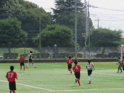 センタリングに合わせ、エースがドンぴしゃの強烈ヘディングシュートです。
