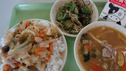 『ごはん けいちゃん焼き きゅうりの塩昆布和え すったて汁』