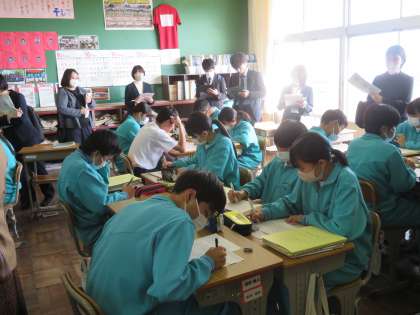 宝泉中の英語の先生の授業をみんなが見に来ました。