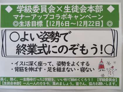 明日はマナーアップキャンペーンの総仕上げです。