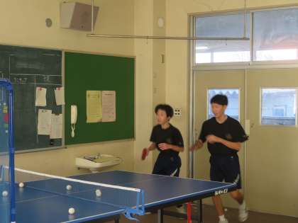 卓球部男子も、マシン相手に、仲間相手にそれぞれが真剣に活動しています。