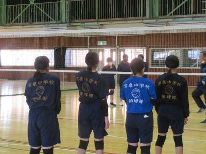 宝泉中排球部を、背中にまとっています。