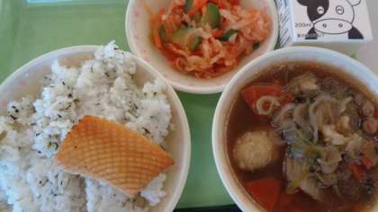 菜めし いかのスタミナ焼き キムチ和え きりたんぽ汁