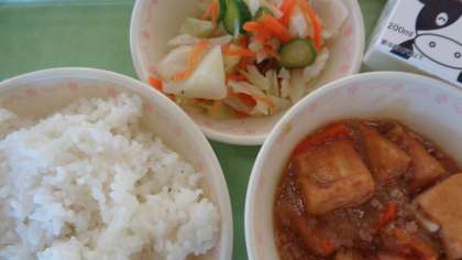 ごはん マーボー厚揚げ 塩だれキャベツ