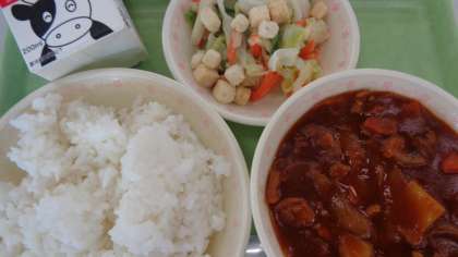 ◇カレーは「1ヶ月おつかれさま、頑張ったね! カレーをどうぞ」という栄養士さんと給食調理員さんのごほうびです。