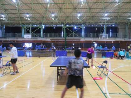 意味がわからないと思いますが、体育館全面に卓球台を配置し、複数の学校と練習試合をする光景が、まるで市民体育館での大会に見えるんです。