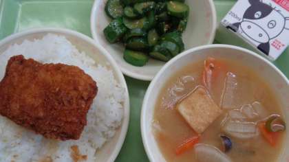 ごはん チキンたれカツ きゅうりのピリ辛和え 田舎汁
