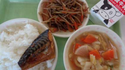 ごはん さばの照り焼きレモン きんぴらごぼう 白菜のみそ汁