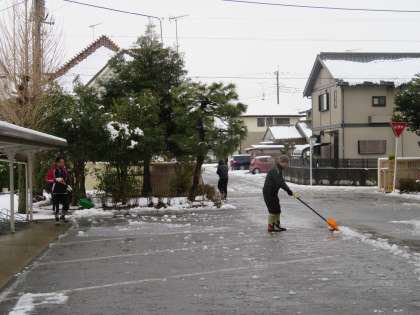 早朝から先生達が学校敷地内の、とりわけ生徒のみなさんが一番通るところを中心に雪かきをしています。