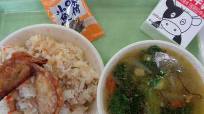 中華風まぜごはん 揚げぎょうざ もずくスープ 味付小魚