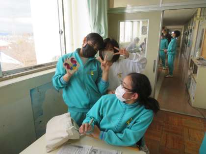 1年生の美術では、刀の作成が終わり、次の製作に入っています。