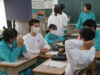 1年と2年生の5時間目の授業の様子です。給食後ですが、集中して教師の話を聞いたり...