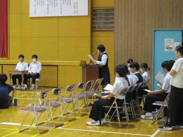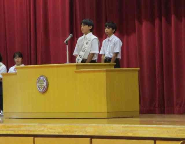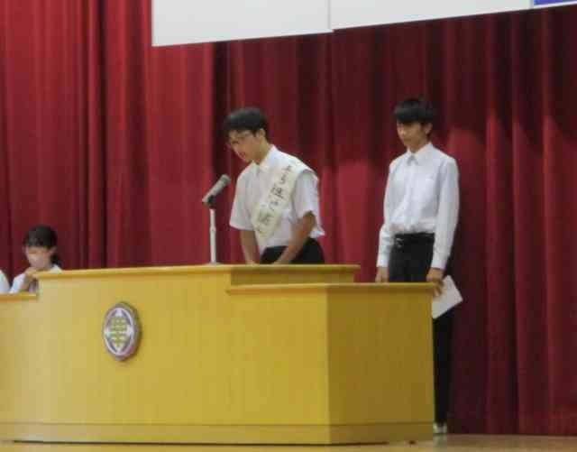 生徒会本部役員選挙 立会演説会 公開日 2025/10/01 更新日 2025/10/01 生徒会 10月1日に、生徒会本部役員選挙立会演説会を行いました。2年生6名、1年生2名の立候補者が自分の思いを精一杯伝えることができました。責任者の人も投票を勝ち取ろうと最後の演説をしてくれました。 +7