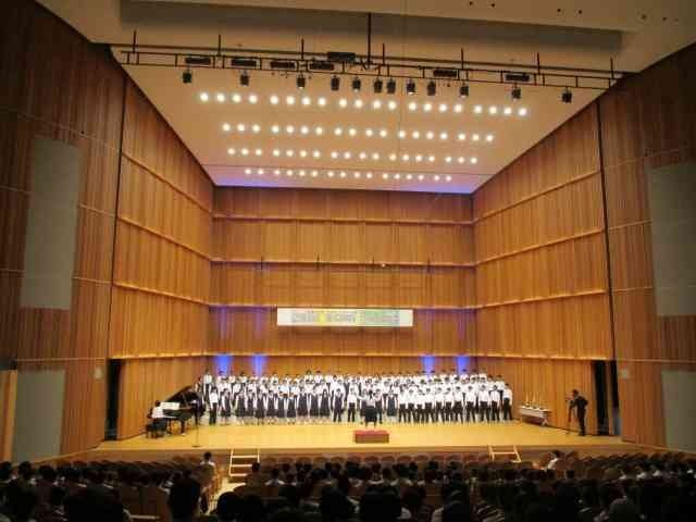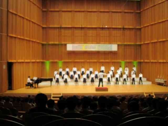 10月15日に、市民会館にて合唱コンクールを行いました。これまで各クラス、学年で自分たちの歌を仕上げるために力を合わせて練習してきました。一発勝負となるステージ上のわずかな時間で、心をこめ、全力で歌いきってくれました。