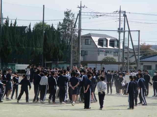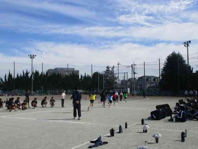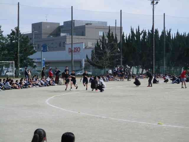 まずは格団ごとに円陣を組んで気合いを入れ、次に団対抗選抜リレーで勝負し、最後に長縄練習を行いました。本番でもみなさん頑張ってください。