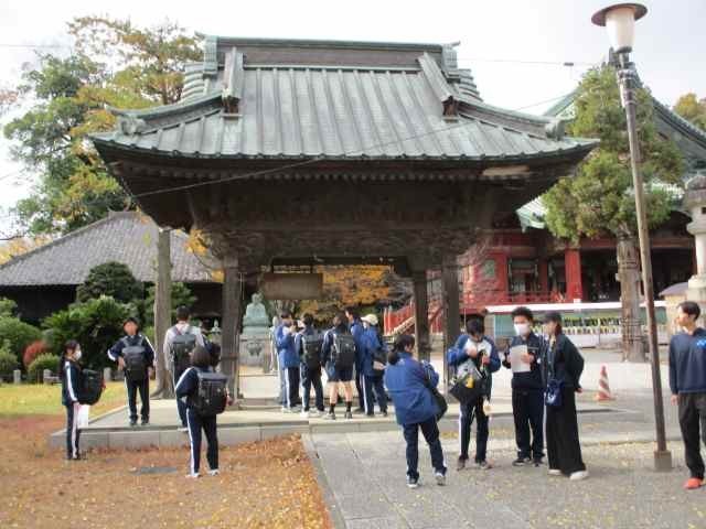 11月18日に、2年総合の時間で大光院を見学に行きました。呑龍さまのガイド役になろうという学習が始まっていますが、まずは現地の何がどのようになっているか調査する学習を行いました。関東菊花まつりも行われている秋らしい日に調査を行うことができ、生徒もこれからの学習へより気持ちが高まってきました。