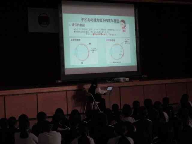 12月11日に、第2回の学校保健委員会を行いました。生徒会保健委員会が「目の健康」について調べまとめたスライドを全校生徒対象に説明を行いました。近視は治らないが進行を遅らせることができること、そのためにはスマホなどを目からはなして短時間の使用にすること、屋外で適切に活動して日光を直接浴びることなど予防策を学びました。眼科の学校医の先生と薬剤師の先生からご助言をいただき、生徒たちも自分たちの目を大切にする意欲と態度を高めることができたと思います。
