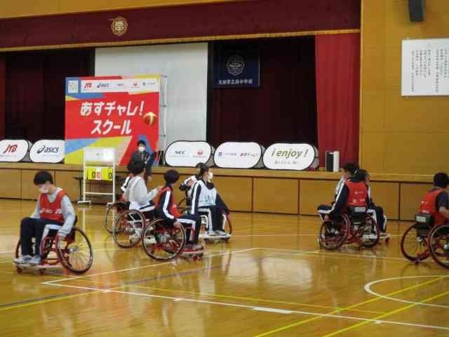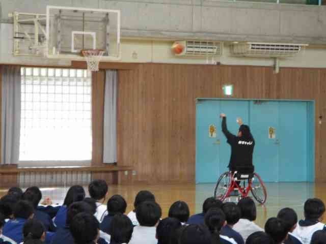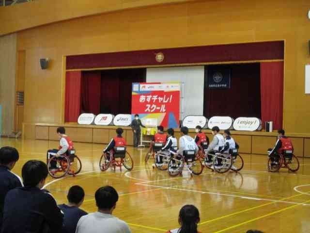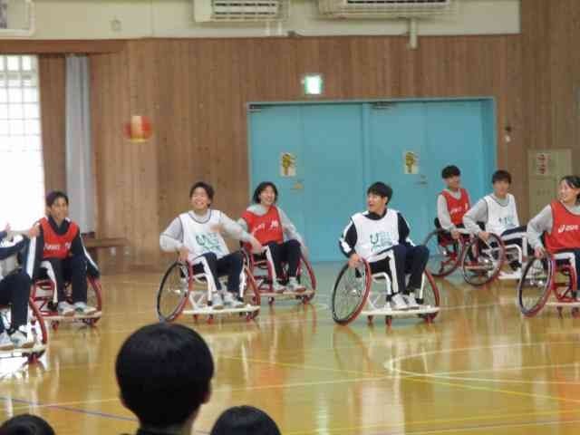 車いすバスケットボール競技用の車いすを使ったデモンストレーションや生徒や教員による車いすバスケットボール体験も行い、大変盛り上がりました。