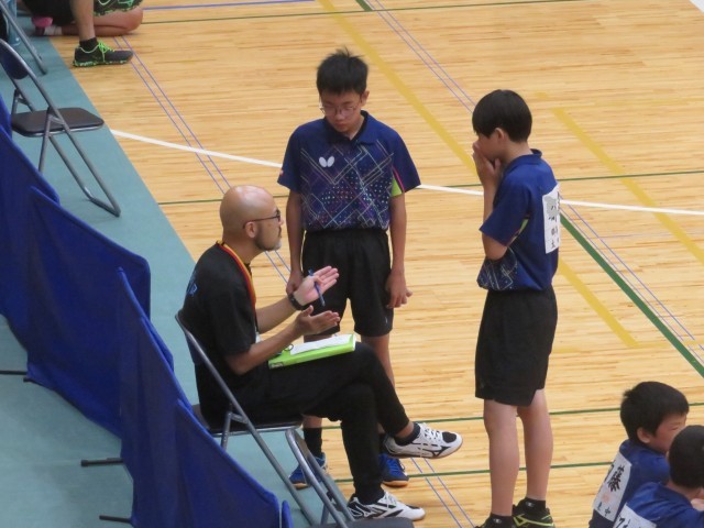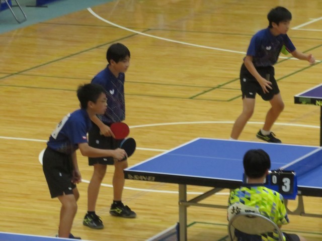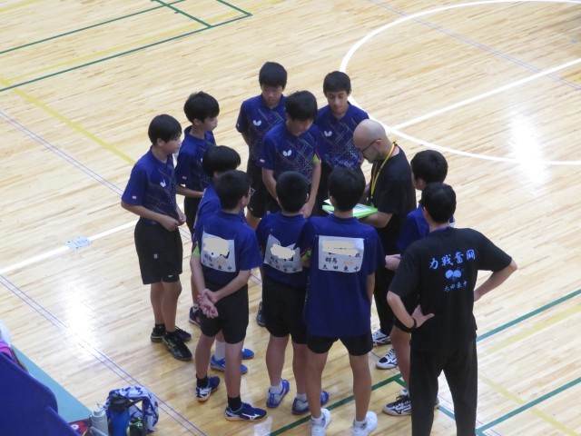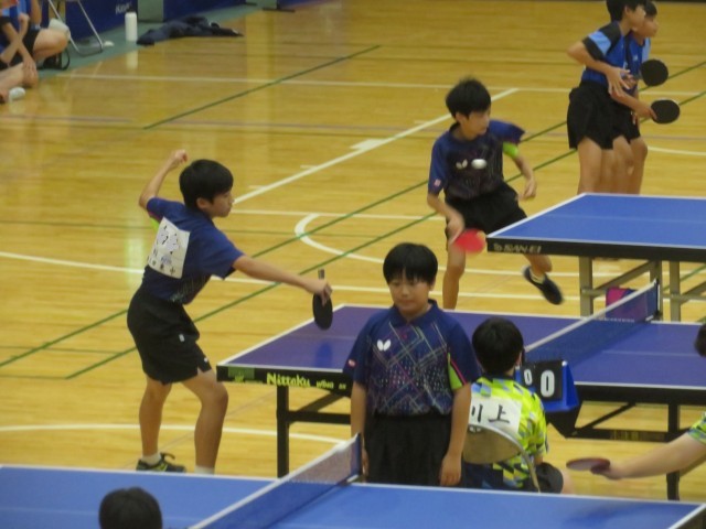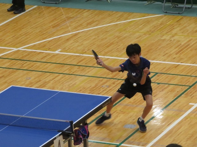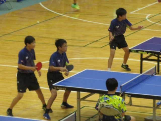 市中体連新人大会 男子卓球団体戦 気合いのスマッシュで決勝トーナメントに進出しました。
