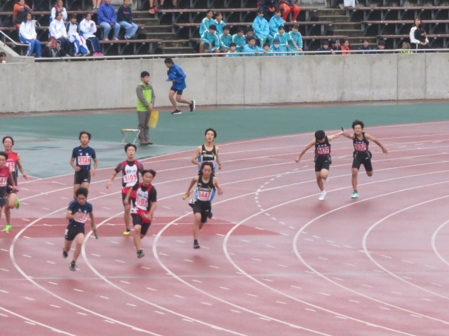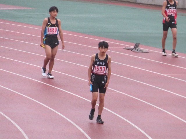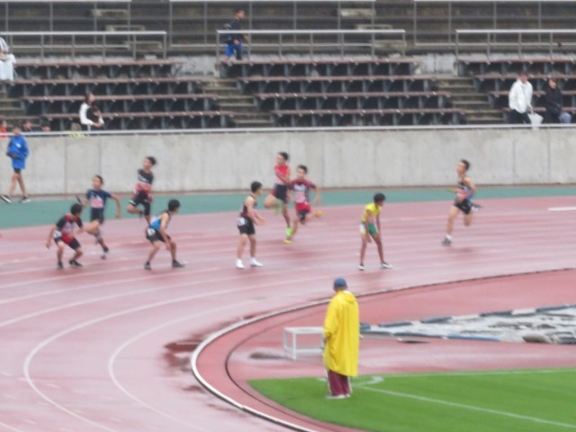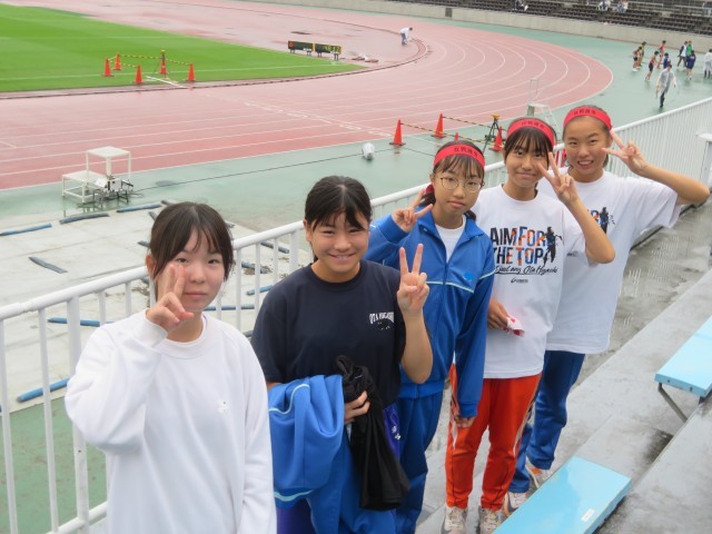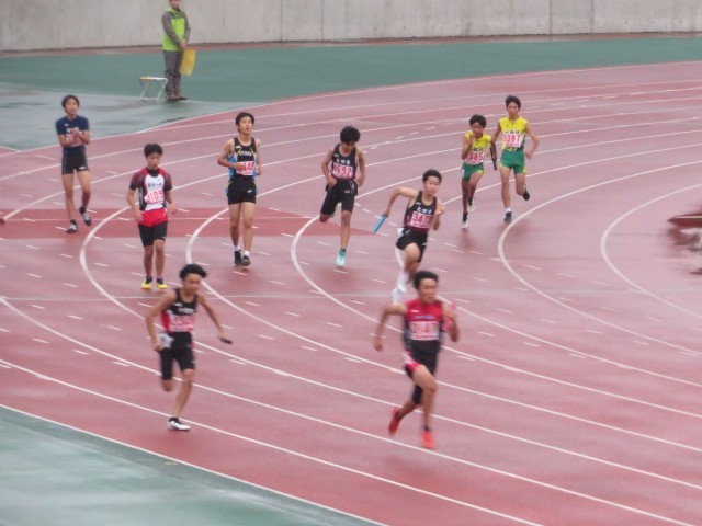 女子4×100mR 見事1位に輝きました。おめでとうございます。小雨降る中、コンディションを整え、日頃のパフォーマンスを十分に発揮しました。選手は皆、「記録はまだまだ伸びる」と総合を視野に意気込んでいます。応援よろしくお願いします。