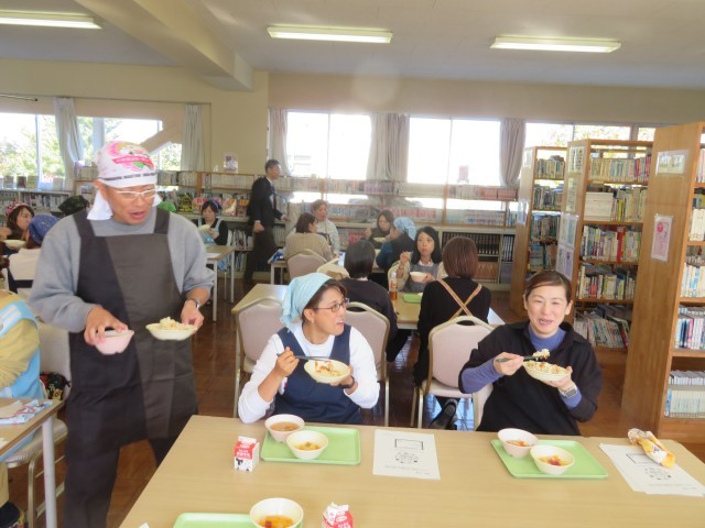 PTA主催の学校給食試食会が企画され、参加者は給食の準備から配膳、片付けまで全てを役割分担しながら体験しました。懐かしい思いと今時の給食はどんなかと皆さんで向かい合い賑わいながら味わいました。食後は栄養士による簡単レシピや栄養についてのエトセトラの講義もあり、とても充実した試食会となりました。