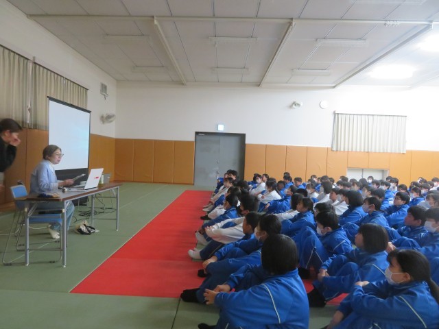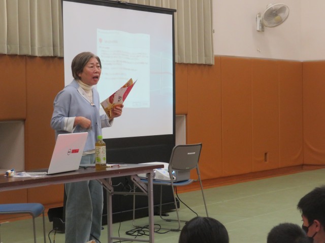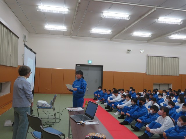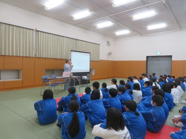 薬剤師の先生を講師にお招きし、1年生を対象に講義をいただきました。薬物の危険性や回避方法など熱心に聞き入っていました。