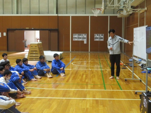 保健体育 器械体操 跳び箱の授業風景です。生徒たちはタブレットを活用し、動画撮影を分析しながら目標に近づいていきます。