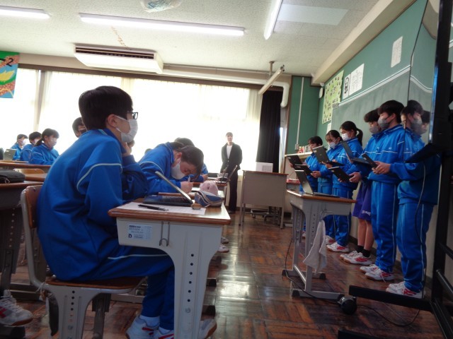 今年度最後の授業参観。これまでの学習で調べたことを端末を活用して堂々と発表できました。