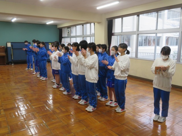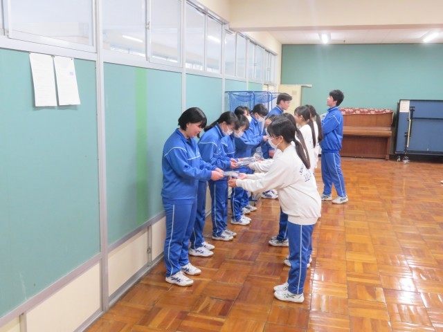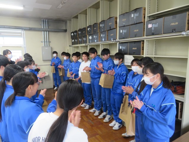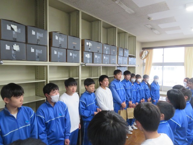 いくつかの部活動では、昼休みの時間にささやかなお別れ会が営まれました。1,2年生から感謝の言葉が贈られました。