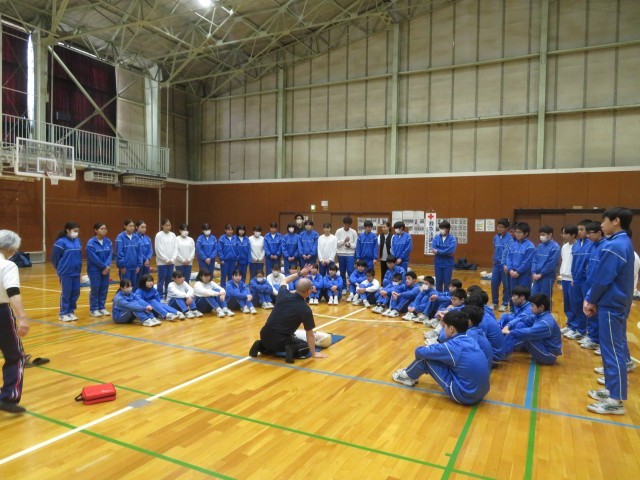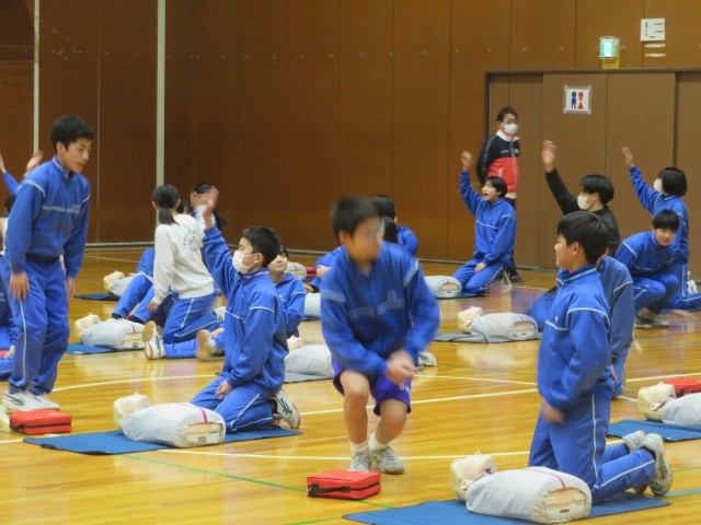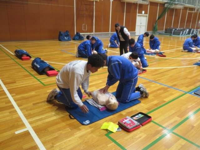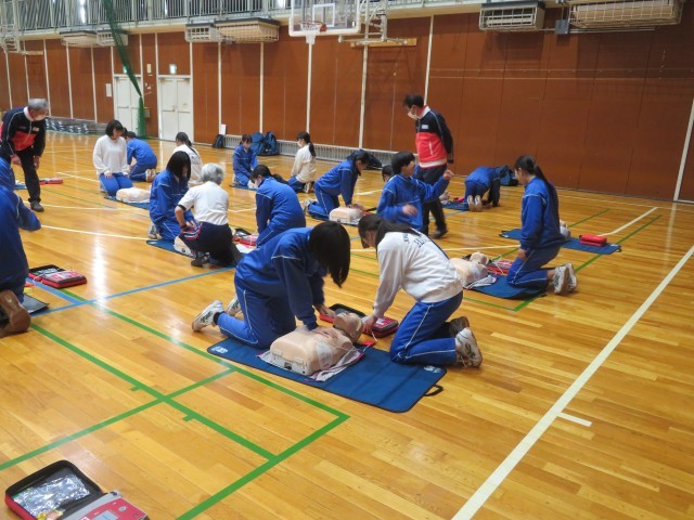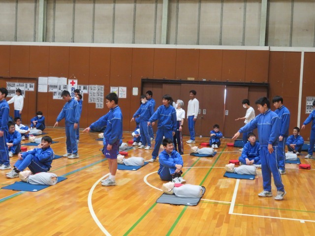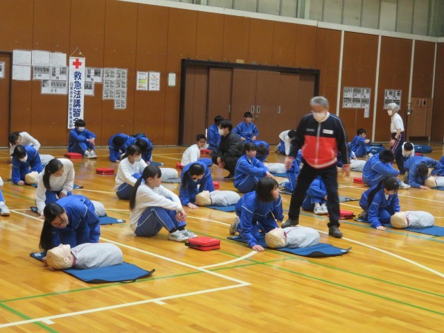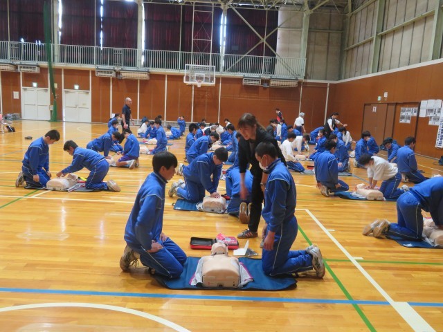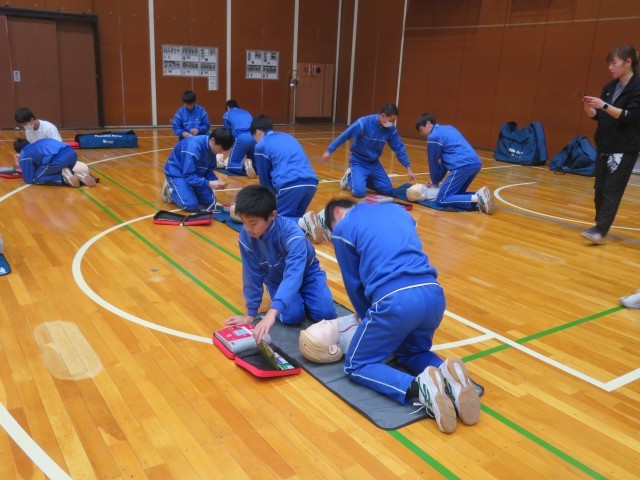 日本赤十字社より講師をお招きし、授業の一環として救急救命講習会を行いました。生徒は、指導員の動きや声の大きさ、伝え方を一生懸命に習って知識と動作を学びました。指導員の方からは習得が早く、周りの人にしっかりと伝わる声量であると評価していただきました。誰もが大切な命です。できる限り繋げていきたいものです。