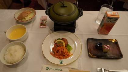 夕食です。 全員が前向きで黙食。