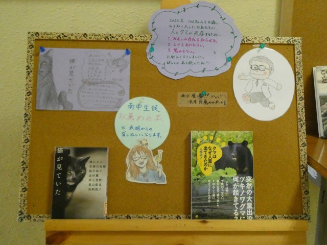 今週の南中生徒 お薦めの本は『猫が見ていた』です。また、理科の先生 お薦めの本は、『熊はなぜ人里に出てきたのか』です。ぜひ、読んでみてください。