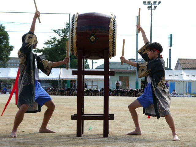 会場にいるすべての人の心を惹きつける素晴らしい和太鼓の音が響き渡っています。さあ、南中ソーランの始まりです。