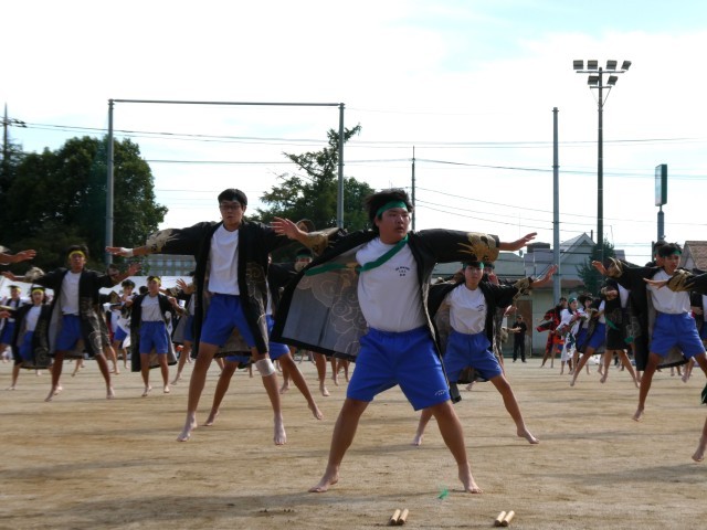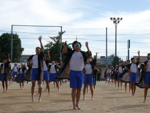 躍動感のある素晴らしい南中ソーラン。その姿を見ている1,2年生に大きな感動を与え、良き伝統が引き継がれていく瞬間です。