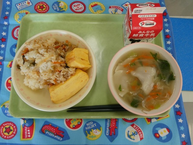 10月8日 中華風混ぜご飯 公開日 2025/10/08 更新日 2025/10/08 学校のようす 本日の献立は、「ご飯、中華風混ぜご飯の具、厚焼き玉子、ぎょうざスープ」 混ぜご飯は、ザーサイのコリコリした食感と辛さが特徴的でとてもおいしいです。甘い厚焼き玉子と一緒に食べるとさらにおいしいです。スープは、水餃子のジューシーな味が口の中いっぱいに広がるおいしさです。