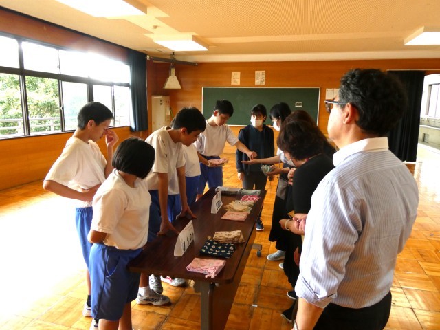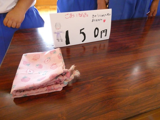 11組の生徒が製作した巾着を2階ホールで販売していました。11月に太田特別支援学校で開催される「すだち祭」に向けての事前学習です。笑顔で元気なあいさつをしながら、販売活動ができました。ぜひ、本番も頑張ってください。