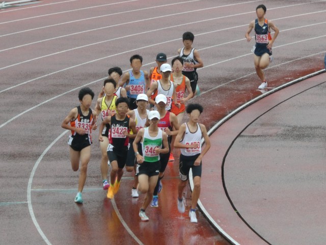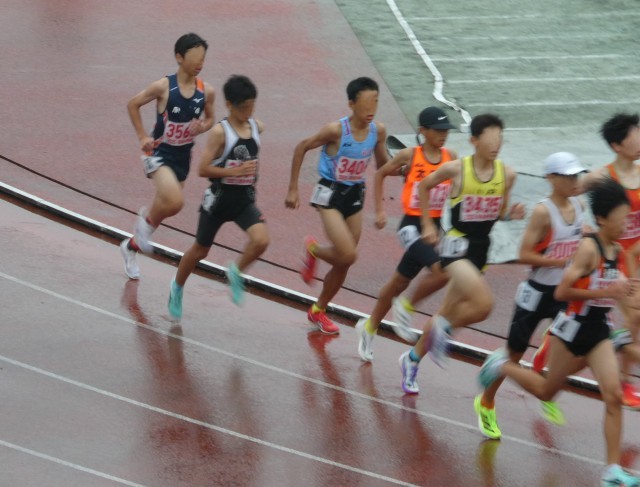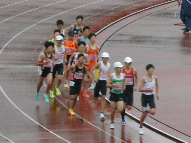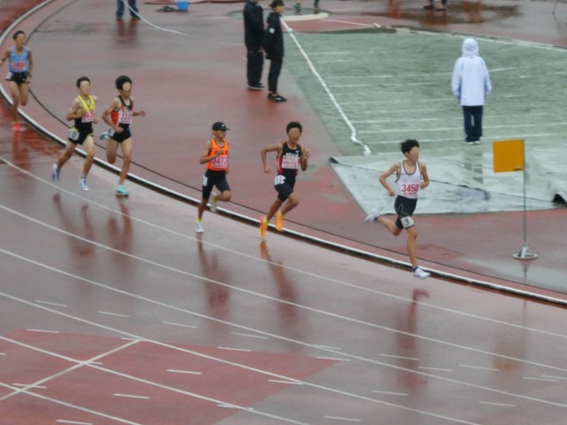 小雨の降る中、懸命に走る姿が素晴らしいです。写真は男子共通1500mの様子です。結果は第5位に入賞となりました。男子1年走幅跳でも第8位に入賞となりました。おめでとうございます。