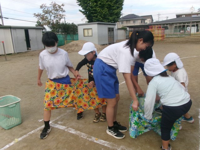 家庭科の授業として、今回は牛沢こども園で保育実習が行われました。運動会のデカパン競争の練習など、5歳児クラスの子ども達と充実した時間を過ごすことができました。