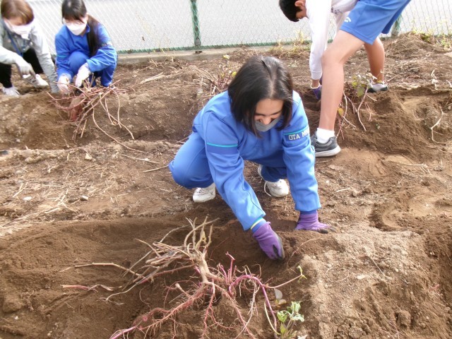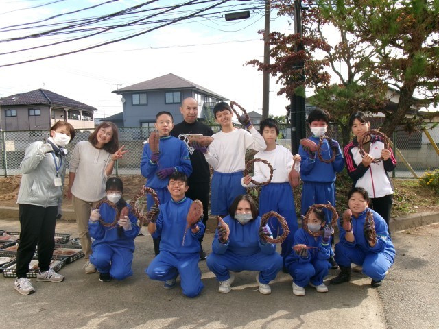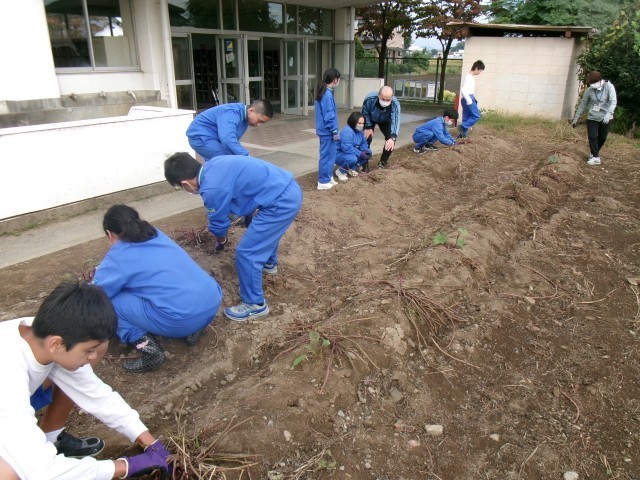 10月23日(木)1校時、さつまいも堀りの体験活動を行い、46本収穫できました。リースづくりも行いました。みんな笑顔です。