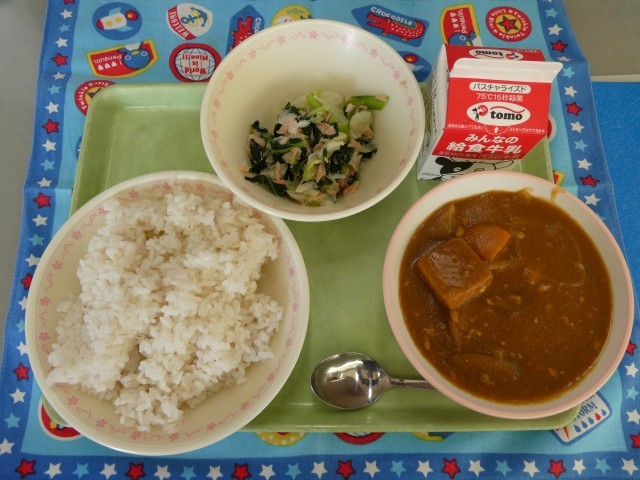 10月29日 群馬の和風カレー 公開日 2025/10/29 更新日 2025/10/29 学校のようす 本日の献立は、「麦ご飯、牛乳、群馬の和風カレー、小松菜サラダ」 カレーは少しだけ辛口で鶏肉、生揚げ、さつまいも、じゃがいもなどの食感が特徴的で、ご飯がよく進むおいしさです。サラダは、小松菜、ツナ、キャベツなどがさっぱりとしたレモン味に包まれ、とてもおいしいです。