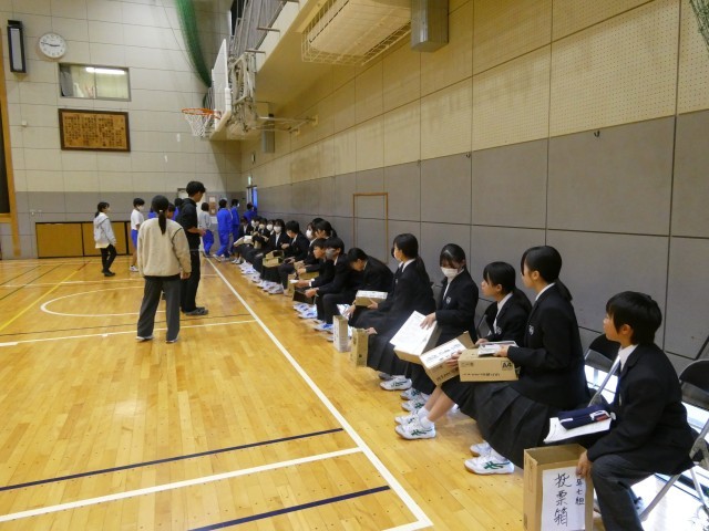 選挙管理委員の皆さんのおかげで生徒会本部役員選挙の立ち会い演説会、投票、開票作業がスムーズに完了しました。ありがとうございました。